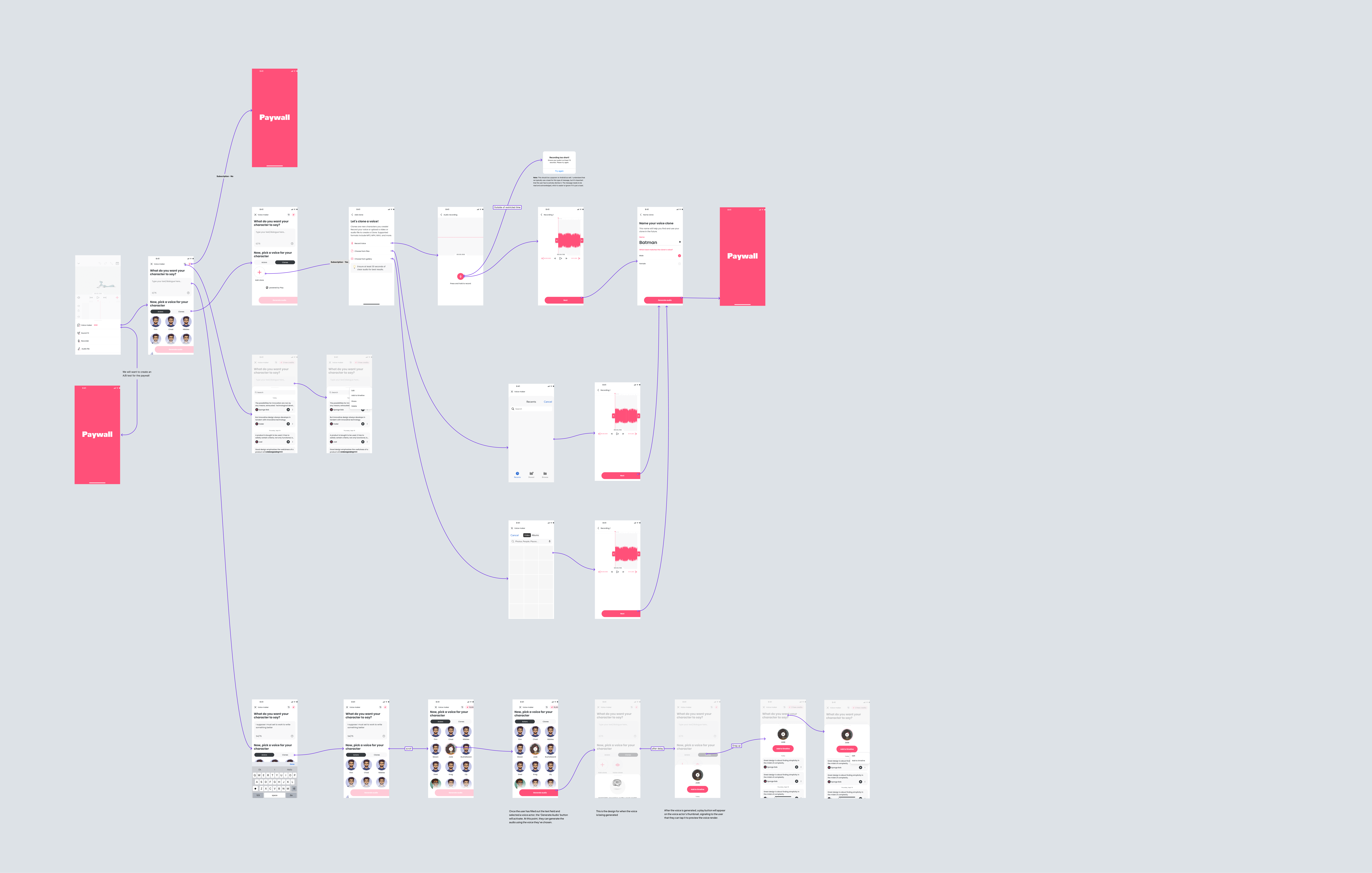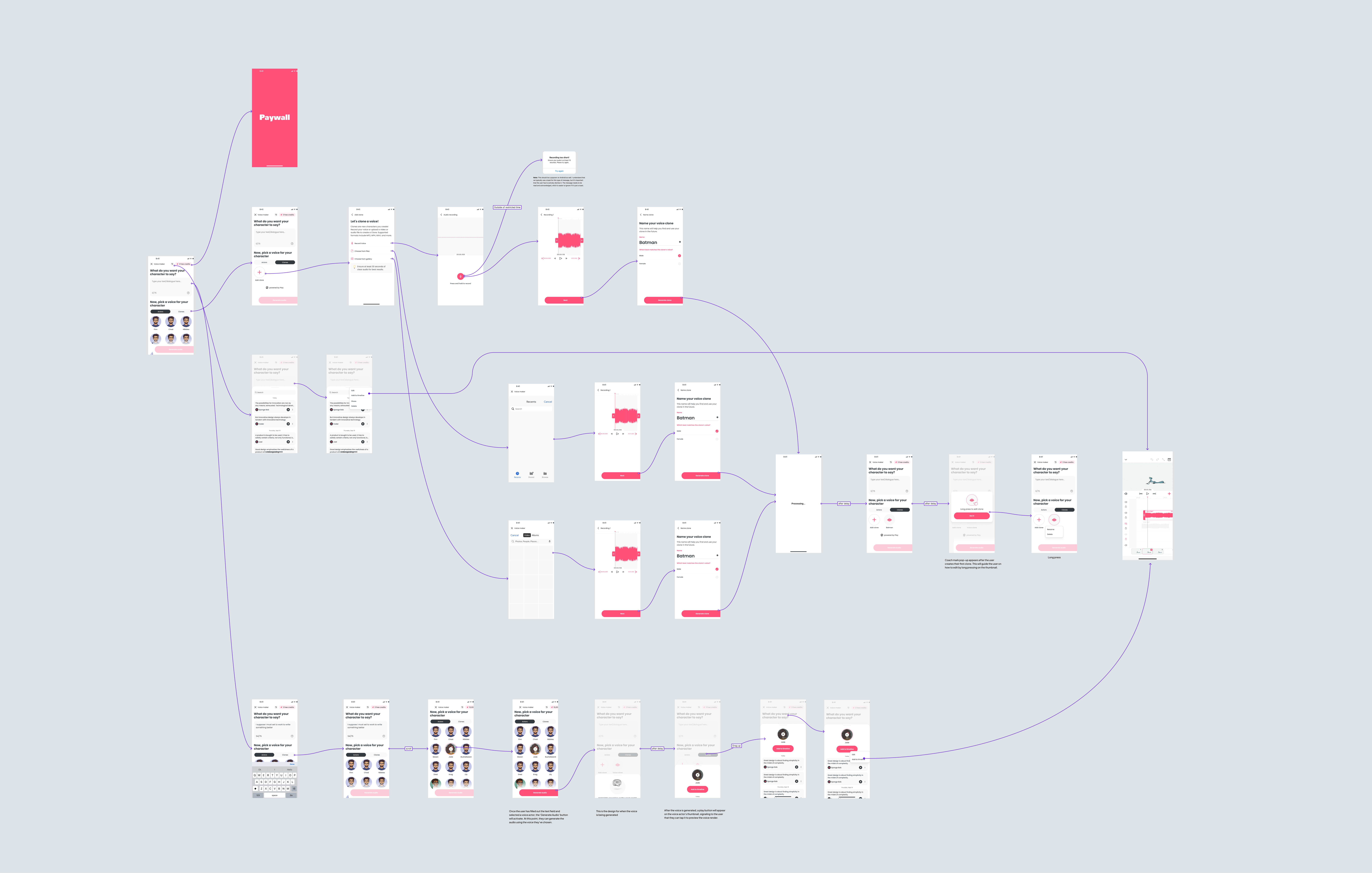 Help creators add voiceovers to their animations without hiring voice actors by generating character audio directly inside Flipaclip. The goal was to support a beginner audience on touch devices, with strong usage on both tablets and phones, plus a free tier.